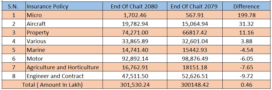 निर्जीवन बीमाको दायरा खुम्चिँदै, मोटर, कृषि बीमा घट्यो, सम्पत्ति र हवाई बीमा बढ्यो