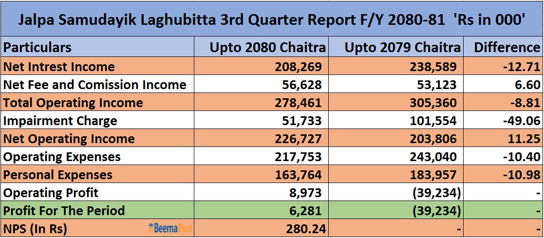 इम्पेरमेन्ट चार्ज घटेसँगै जाल्पा सामुदायिक लघुवित्तको नाफा धनात्मक