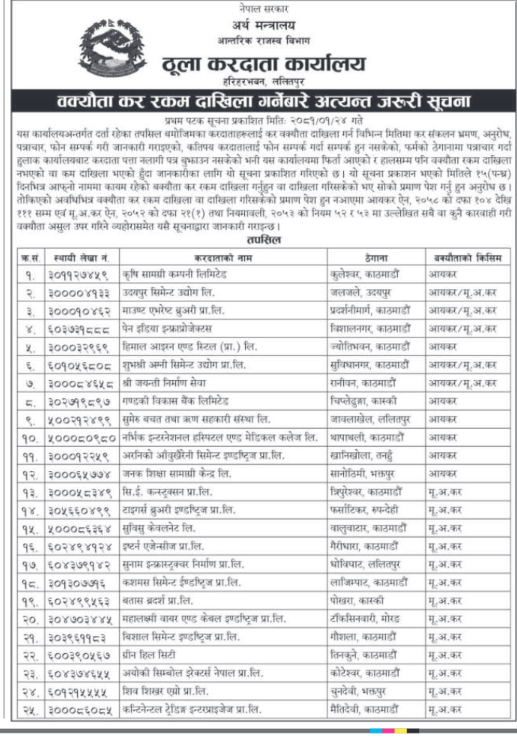अर्बौं राजस्व छली गर्ने २५ ठुला कम्पनीलाई कर तिर्न ताकेता, पाँच सिमेन्ट उद्योगदेखि इन्टरनेटसम्म