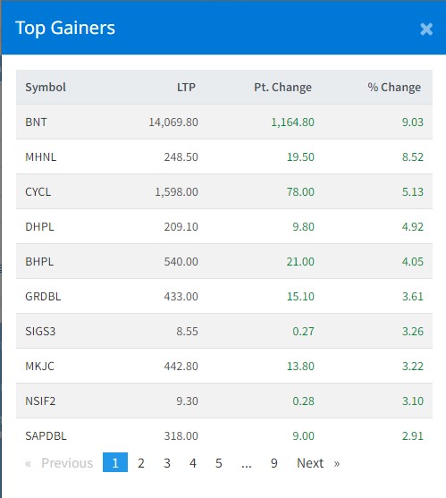 त्यस्तै, माउन्टेन हाइड्रो नपालको ८ दशमलव ५२ प्रतिशत, सीवाइसी नेपाल लघुवित्तको ५ दशमलव १३ प्रतिशत, दिव्यश्ररी हाइड्रोपावरको ४ दशमलव ९२ प्रतिशत र बाराही हाइड्रोपावरको ४ प्रतिशतले शेयरमूल्य बढेको छ ।