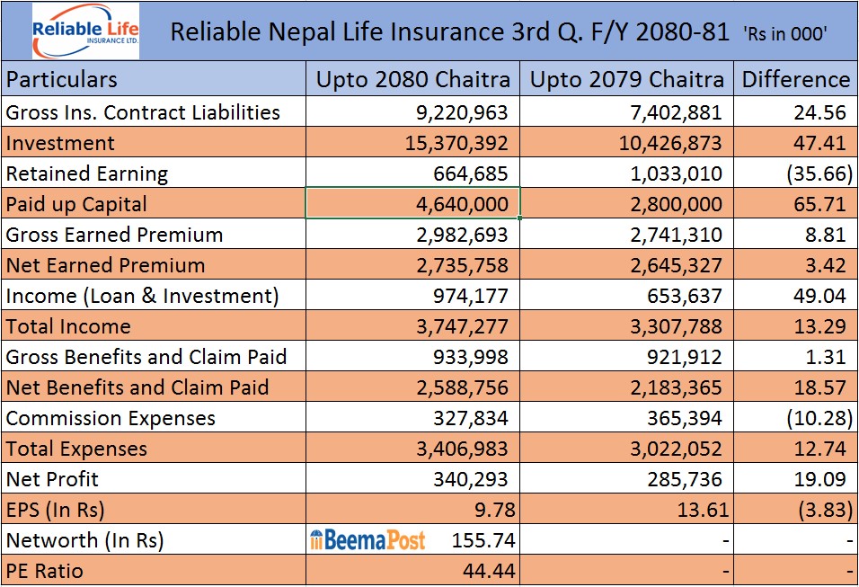 रिलायबल नेपाल लाइफको नाफा १९% बढ्यो, जीवन बीमा कोषमा ९.२२ अर्ब