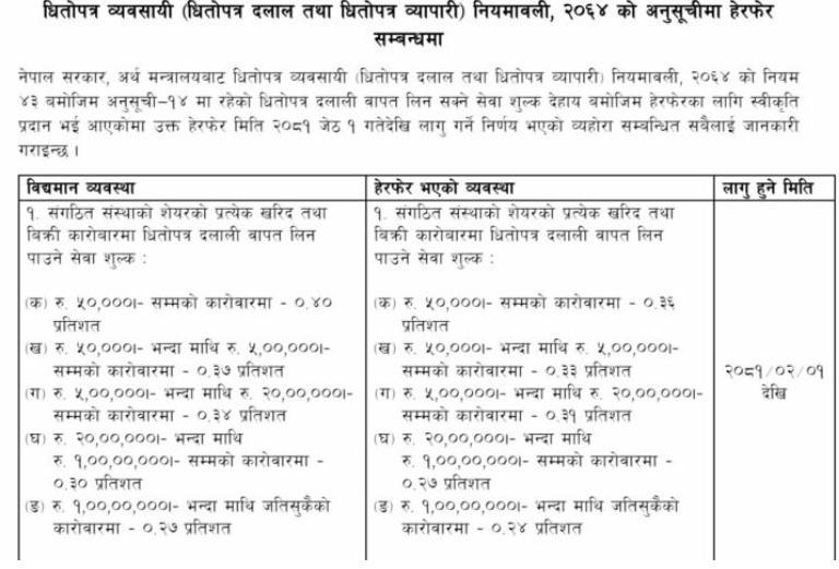 जेठ १ गतेदेखि लागु हुने ब्रोकर कमिशनको दर सार्वजनिक, कुनमा कति ? (सूची सहित)