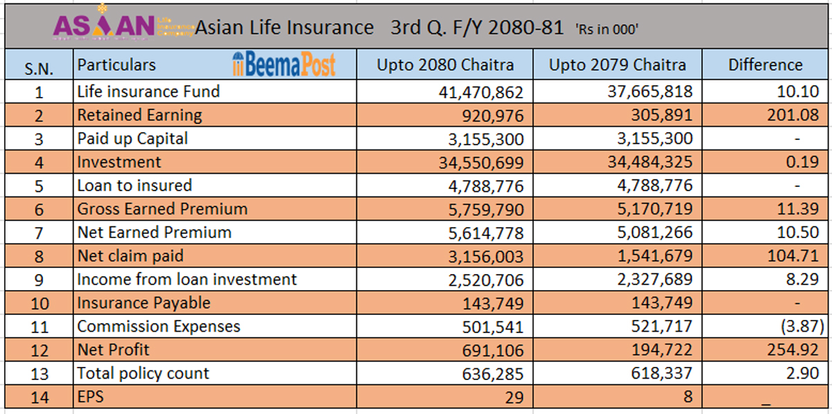एसियन लाइफको बीमा कोष ४२ अर्ब नजिक, मुनाफासहित अधिकांश सूचांकमा उल्लेख्य प्रगती