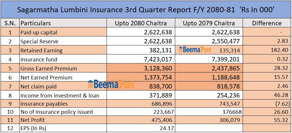 सगरमाथा लुम्बिनी इन्स्योरेन्सको नाफा साढे ४७ करोड, कस्तो छ अन्य सूचाङ्कको अवस्था ?