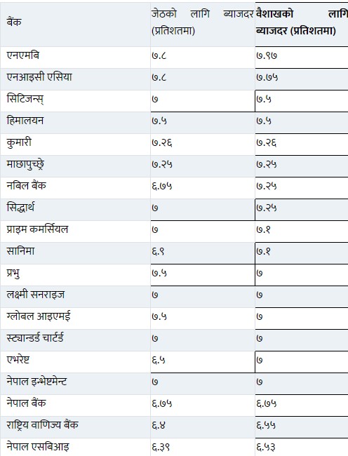 जेठको लागि बैंकहरूले निक्षेपको ब्याजदर घटाईयो, कुनले कति ?