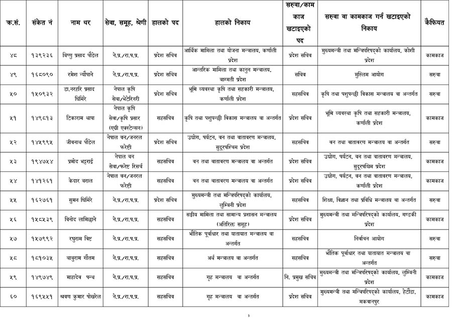 एकैपटक ६० जना सह–सचिवको सरुवा (सूचीसहित)