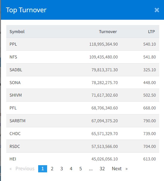 साथ, आज पिपुल्स पावरको ५४० रुपैयाका दरले ११ करोड ८९ लाख रुपैयासहित सर्वाधिक कारोबार भएको छ ।