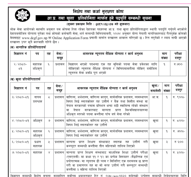 कर्जा सुरक्षण कोषमा विभिन्न पदका लागि जागिर खुल्यो