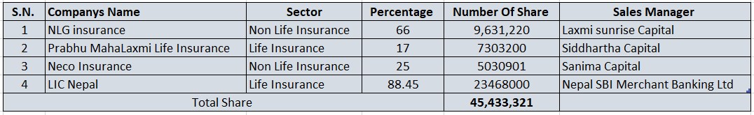 बीमा कम्पनीहरुको साढे ४ करोड कित्ता हकप्रद बोर्डको पाइपलाइनमा, कुनको कति ?