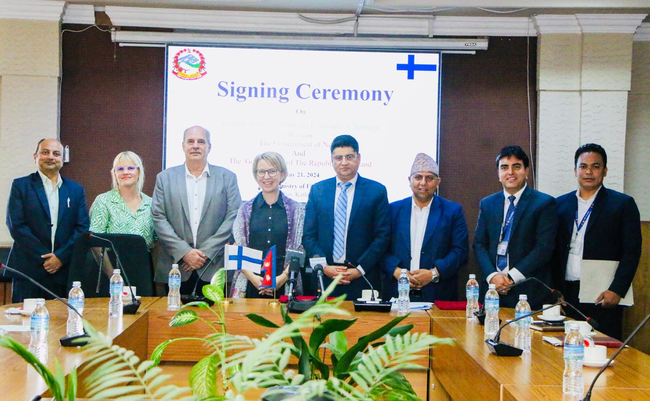 नेपाल र फिनल्याण्ड तथा पुरोपेली संघबीच कूटनीतिक सम्बन्ध स्थापना भएको ५० वर्ष पुगेको अवसरमा उक्त सम्झौता भएको जानकारी दिइयो । आयोजनाको कार्यान्वयन आगामी आर्थिक वर्ष २०८१/०८२ मा हुनेछ । कार्यक्रममा सह–सचिव नेपालले जलवायु परिवर्तनमा स्थानीय अनुकूलन तथा प्राकृतिक स्रोत व्यवस्थापनमार्फत जलवायु परिवर्तनको प्रभाव न्यूनीकरण गर्ने लक्ष्य आयोजनाले राखेको बताए । कार्यक्रमले प्राकृतिक स्रोतको दिगो व्यवस्थापन तथा स्थानीय जनताको जीविकोपार्जनमा योगदान गर्ने विश्वास उनको थियो । राजदूत हेक्काले सम्झौता संयुक्त राष्ट्रसंघीय जलवायु परिवर्तन सम्मेलन कोप–२८० का क्रममा फिनल्याण्ड र युरोपेली संघले गरेको प्रतिबद्धता कार्यान्वयनको एक हिस्सा भएको बताइन् । संयुक्त अरब इमिरेट्को दुबईमा गत कात्तिकमा सम्पन्न कोप–२८ मा कार्बन उत्सर्जनमा नगण्य भूमिका भएका तर जलवायु परिवर्तनको प्रतिकूल प्रभावबाट जोखिममा रहेका नेपालजस्ता विकासोन्मुख मुलुकलाई विकसित मुलुकले जलवायु अनुकूलन कार्यक्रमका लागि सहयोग गर्ने प्रतिद्धता जनाएका थिए ।