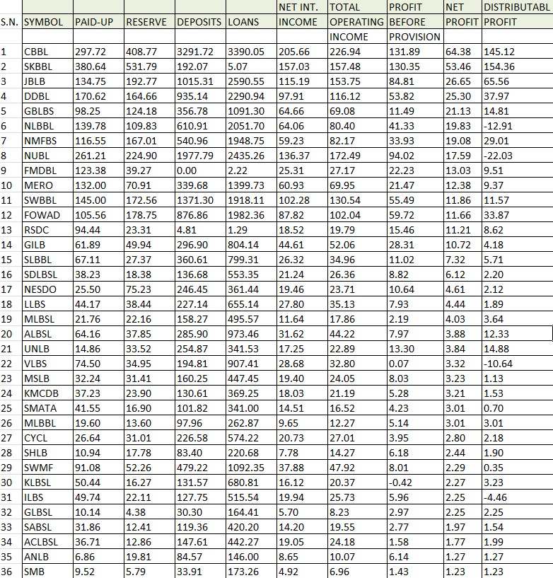 चौथौमा आरएसडीसीको रहेको छ। लघुवित्तको १३।५३ रहेको ।छ