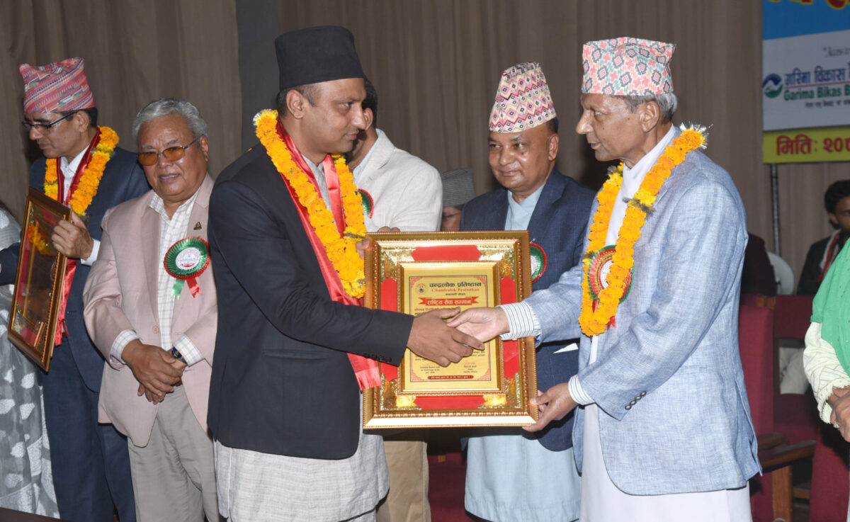पूर्वप्रधानमन्त्री खिलराज रेग्मीबाट उक्त अवार्ड लिदैं