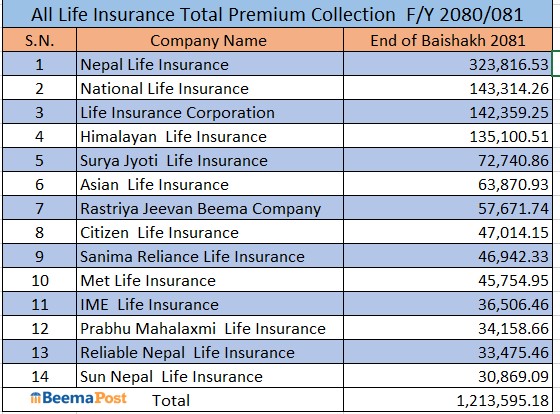 साथै, लाइफ इन्स्योरेन्स कर्पोेरेशनले यस अवधिमा १४ अर्ब ३५ करोड रुपैयाँको व्यवसाय गर्दै तेस्रो स्थानमा रहेको छ । हिमालयन लाइफले १३ अर्ब ५१ करोड रुपैयाँ र सूर्य ज्योति लाइफले ७ अर्ब २७ करोड रुपैयाँको व्यवसाय गरेको छ ।