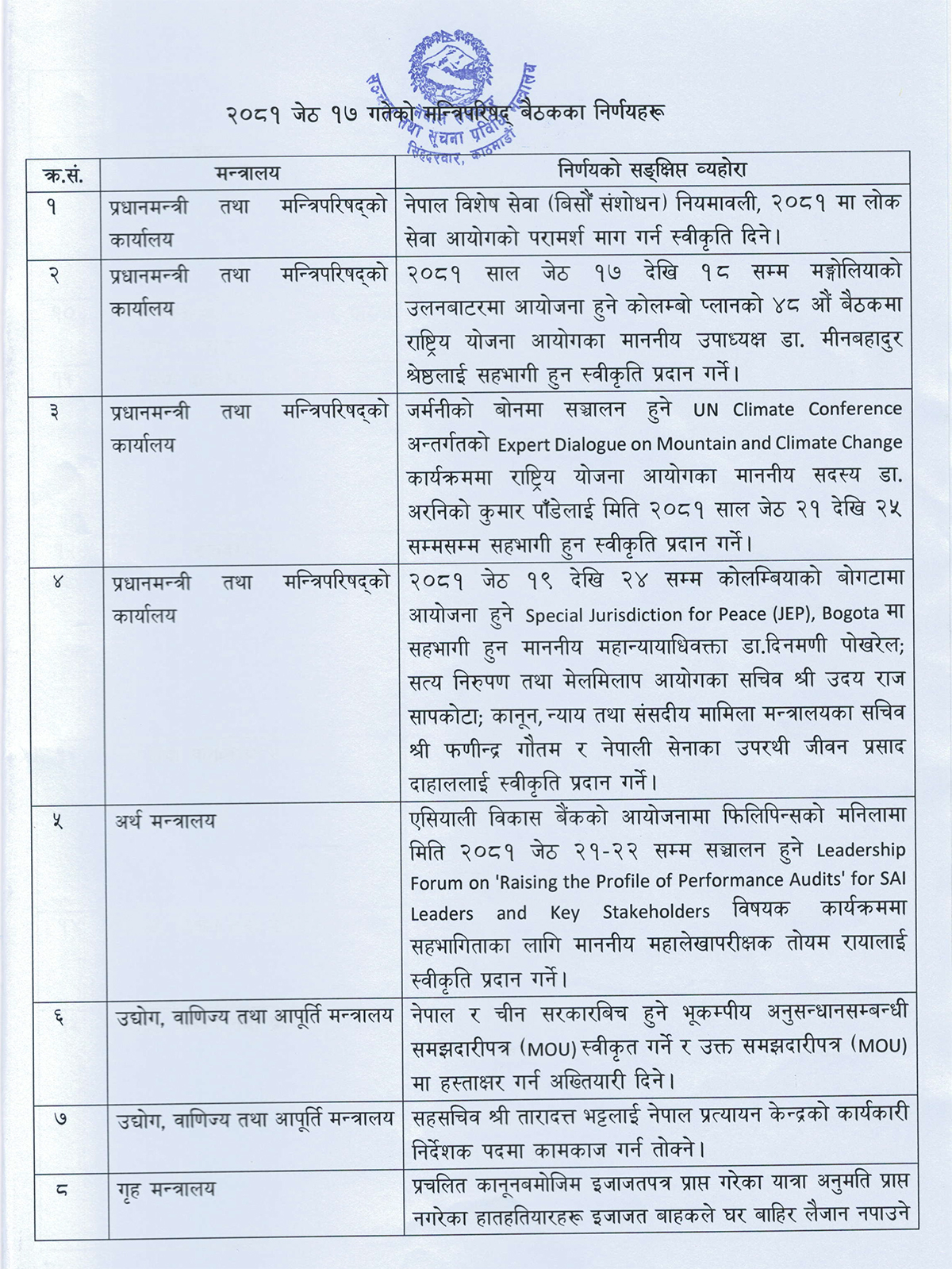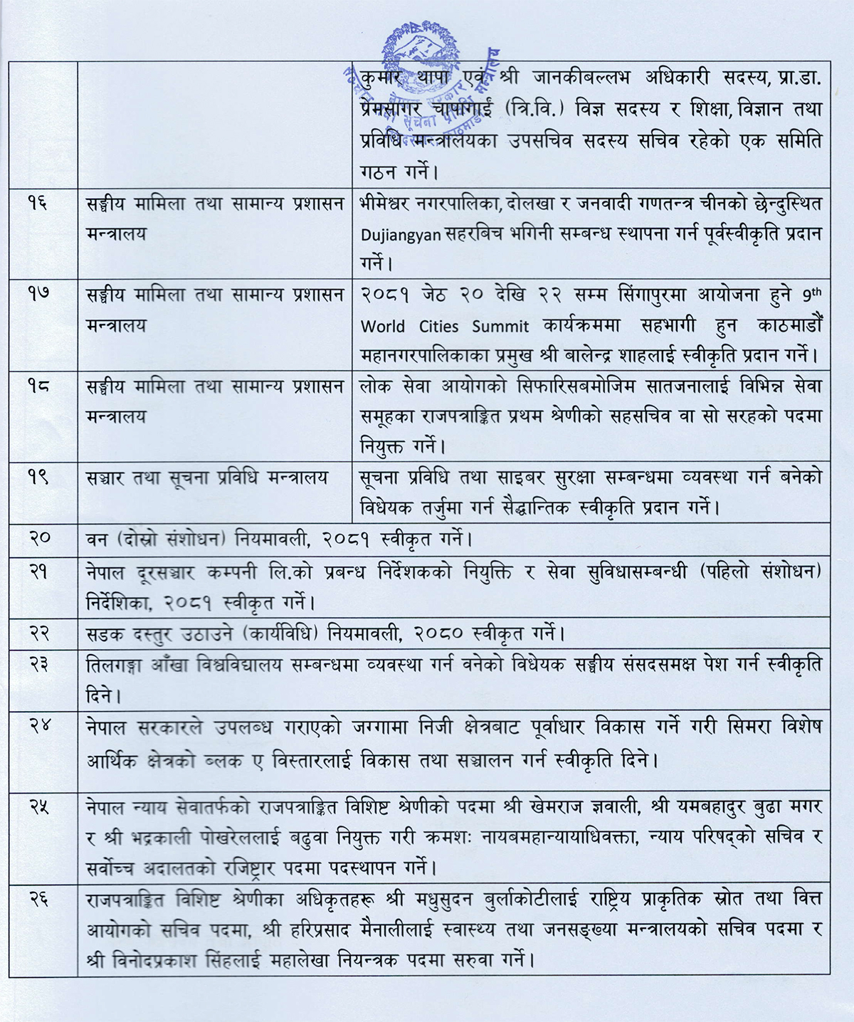 यस्ता छन् मन्त्रिपरिषद्का २६ निर्णय