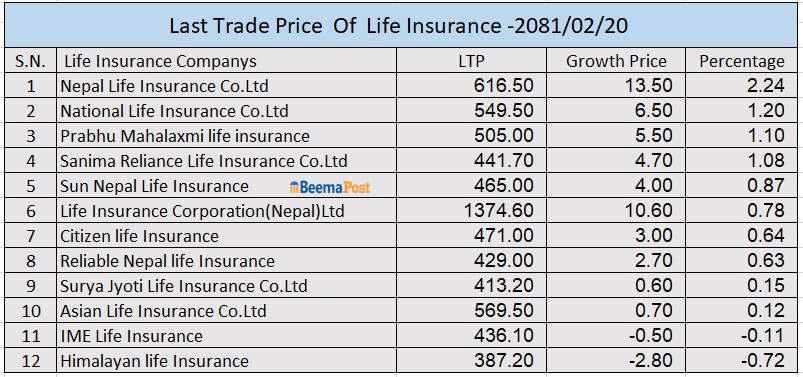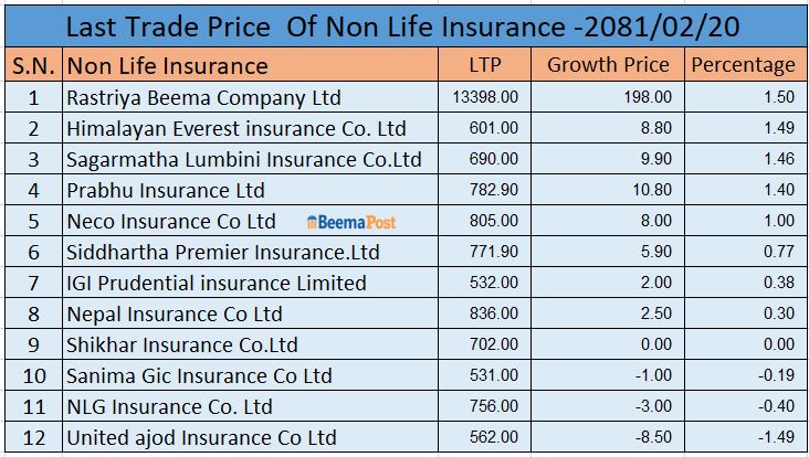 बीमा कम्पनीका शेयरमूल्यमा छायो हरियाली, कुनको कतिले बढ्यो ? (सूचीसहित)