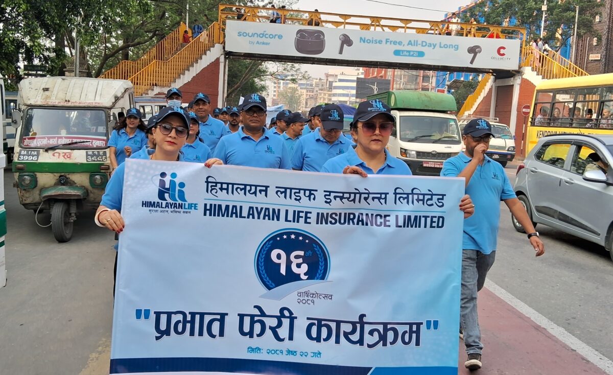 काठमाडौं । हिमालयन लाइफ इन्स्योरेन्स कम्पनीले १६ औं बार्षिकोत्सवको अवसरमा आज विहान राजधानी काठमाडौंमा भव्य प्रभातफेरि कार्यक्रम सम्पन्न गरेको छ ।
