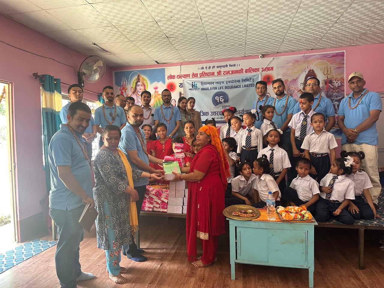 हिमालयन लाइफ उप प्रादेशिक कार्यालय नारायणघाटद्वारा आश्रममा शैक्षिक सामाग्री बितरण