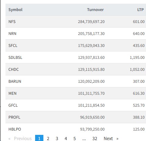 काठमाडौं । साताको अन्तिम कारोबारको दिन नेप्से ओरालो लागेको छ। नेप्से ओरालो लाग्दा पनि आज नेपाल फाइनान्सको सर्वाधिक कारोबार भएको छ ।