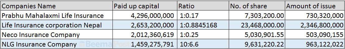 चुक्ता पूँजी नपुगेका चार बीमा कम्पनी हकप्रद शेयर स्वीकृतिको पर्खाइमा, कुनको कति?