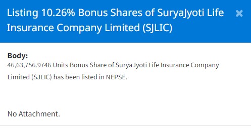 नेप्सेमा सूर्यज्योति लाइफको बोनस सेयर सूचीकृत
