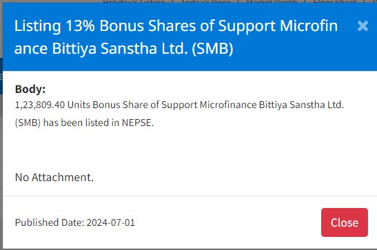 सपोर्ट माइक्रोफाइनान्सको बोनश शेयर नेप्सेमा सूचीकृत