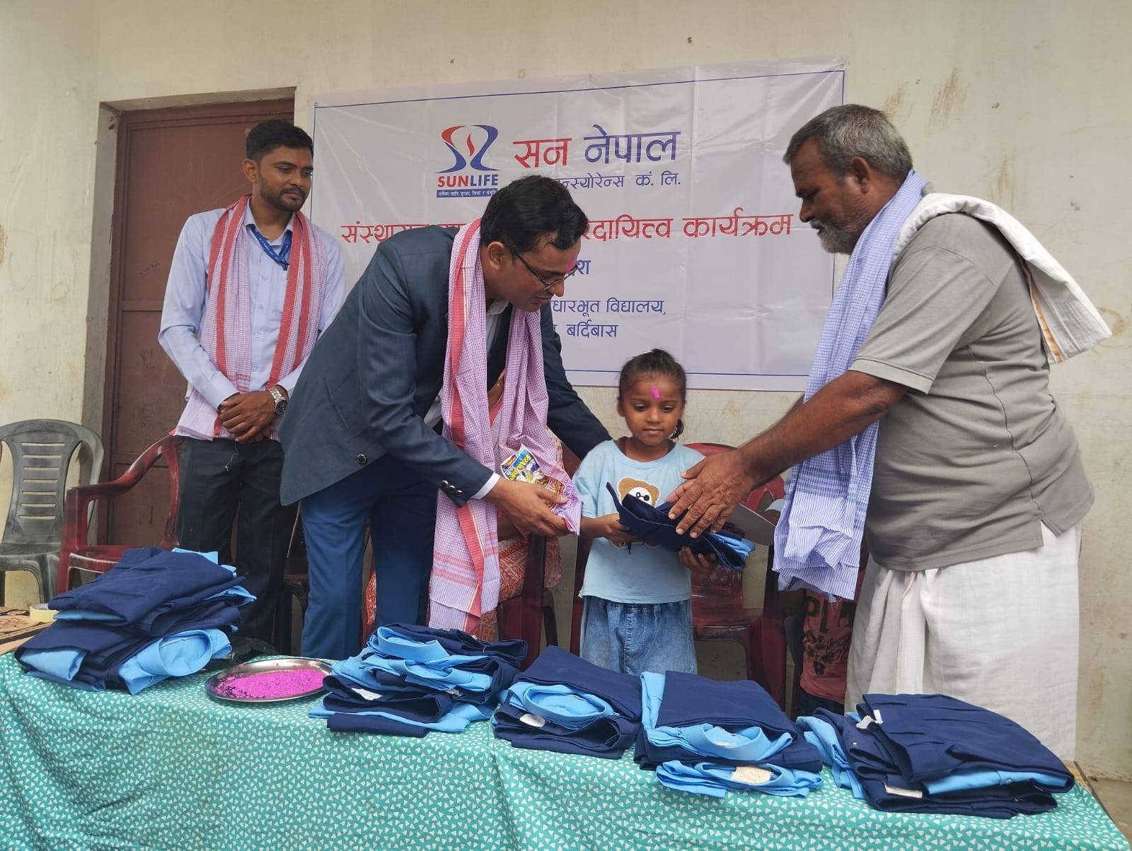 सन नेपाल लाइफ इन्स्योरेन्स मधेश प्रदेशद्वारा विद्यार्थीहरूलाई पोशाक वितरण
