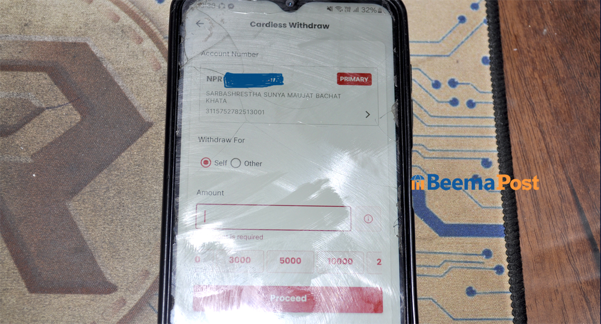 सोही ओटीपी एटीएमको स्क्रिनमा रहेको कार्डलेस ट्रान्जेक्सनभित्र गई आफूले निकाल्न चाहेको रकम पुनः उल्लेख गरी वीथड्र आइकनमा थिचेपछि इच्छाएको नगद रकम प्राप्त हुनेछ ।