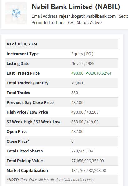 नबिल बैंकको ७९ हजार कित्ता शेयर किनबेच, मूल्य कति ?