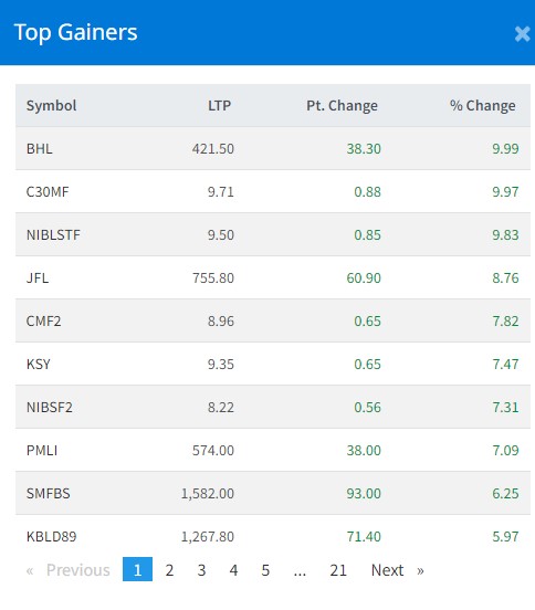 त्यस्तै, एनआईबिएल स्टेबल फण्डको शेयरमूल्य ९.८३ प्रतिशत, जानकी फाइनान्स कम्पनी लिमिटेडको ८.७६ प्रतिशत, सिटिजन्स म्यूचुअल फण्ड २ को ८.७६ प्रतिशतले शेयरमूल्य बढेको छ ।