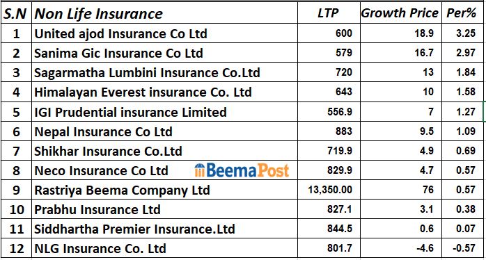 २३ बीमा कम्पनीको शेयर मूल्य बढ्यो, कुनको कति (सूचीसहित)