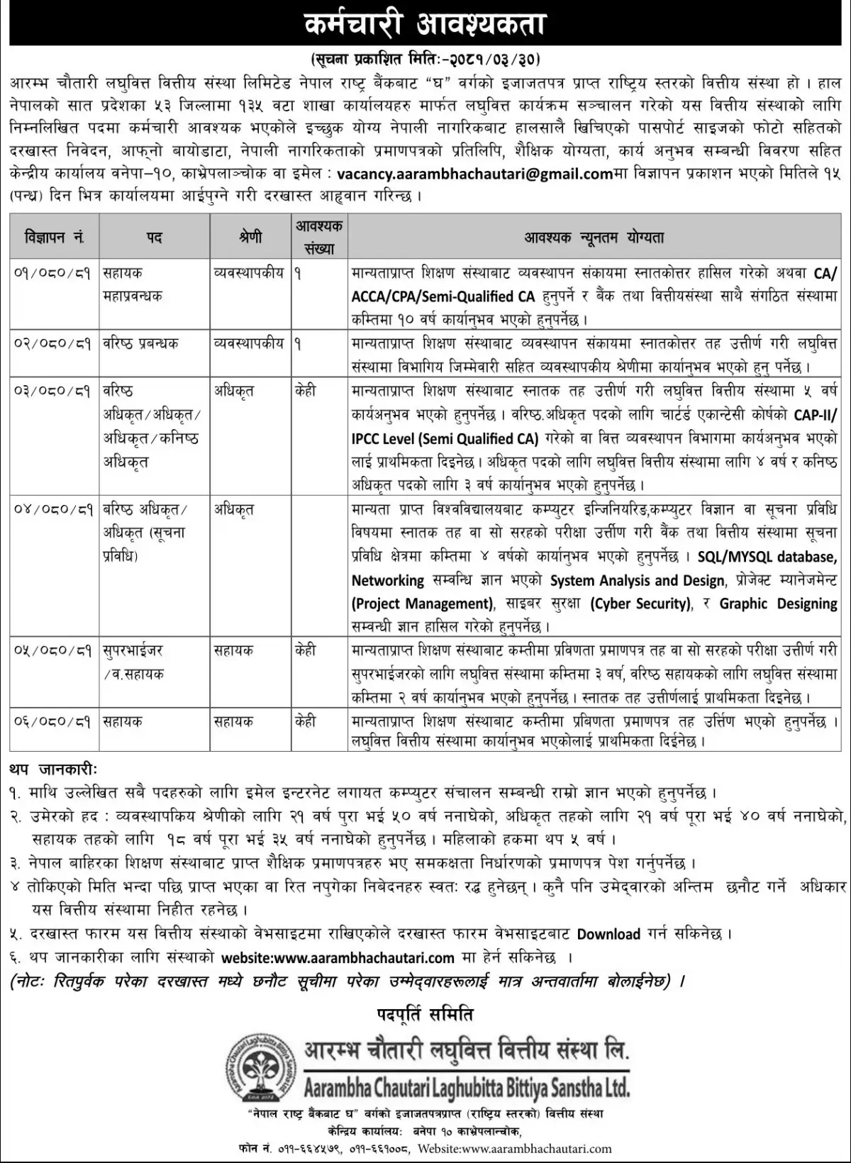 आरम्भ चौतारी लघुवित्तमा रोजगारको अवसर, कति चाहिन्छ योग्यता?