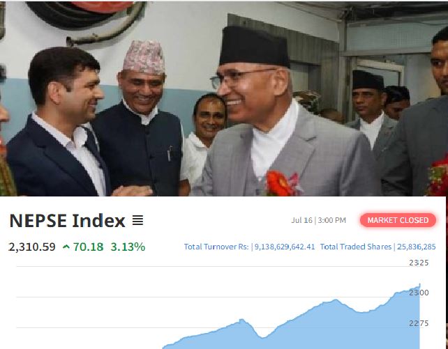 यता, अर्थतन्त्र समेत सकारात्मक बनी रहेको अवस्था छ । वित्तीय प्रणालीमा अधिक तरलताको अवस्था छ । ब्याजदर निरन्तर घटिरहेको छ । यसले समेत शेयर बजारलाई उचाईमा पुग्न बल पुराउने देखिन्छ । अब कर्जा प्रवाह बढाउने गरी नीति आउने धेरैको अनुमान छ । गभर्नर महाप्रसाद अधिकारीलाई एमाले निकट ब्यक्तिका रूपमा लिइन्छ । अबको नयाँ सत्ता समीकरणमा प्रधानमन्त्री र अर्थतन्त्र एमाले पाएको छ । आउने दिनहरूमा केन्द्रीय बैंक र अर्थ मन्त्रालयबीच अझै बढी समन्वय हुने र सोही अनुसार वित्त र मौद्रिक नीतिबीच तालमेल हुन सक्ने लगानीकर्ताको बुझाई छ ।
