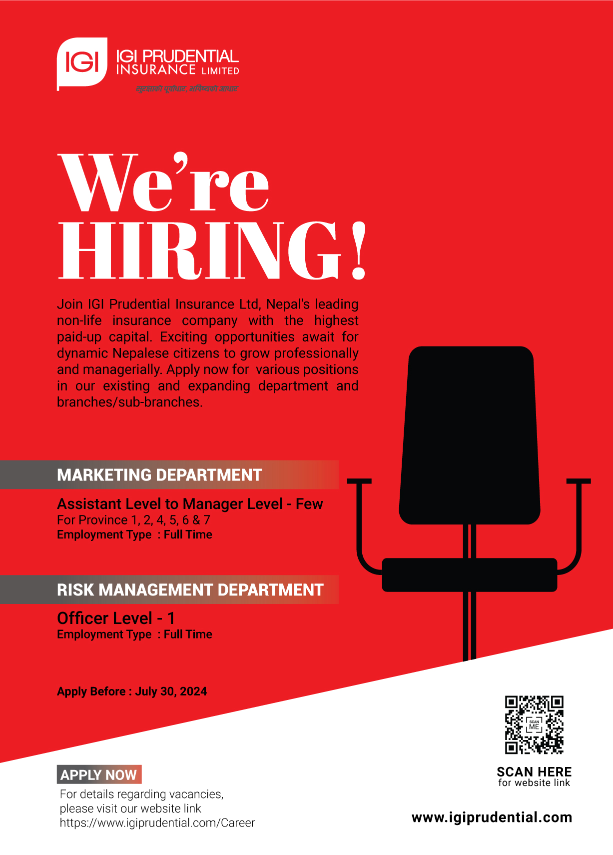 आइजीआई प्रुडेन्सियल इन्स्योरेन्सले माग्यो ६ प्रदेशका लागि कर्मचारी, यसरी दिनुहोस् आवेदन ?