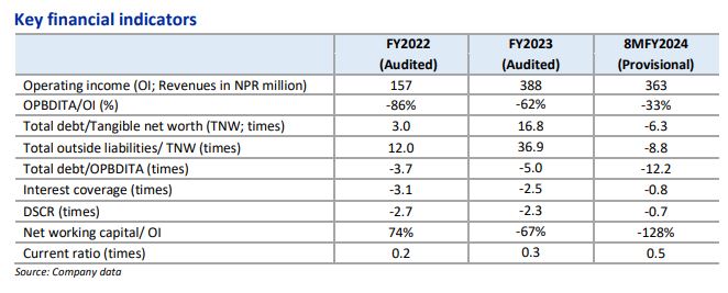 कम्पनीले २ अर्ब ५० करोड रुपैयाँको बैंकिङ कर्जाका लागि रेटिङ पाएको छ । १४ करोड ८२ लाख रुपैयाँको दीर्घकालीन कर्जाका लागि एनपी एल डबल बी माइनस र २ अर्ब ३५ करोड १८ लाख रुपैयाँको अल्पकालीन कर्जाका लागि एनपी ए फोर रेटिङ पाएको छ ।