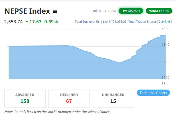 बजार भने १७.६३ अकंले बढेर २५५१ बिन्दुमा कायम भएको छ ।