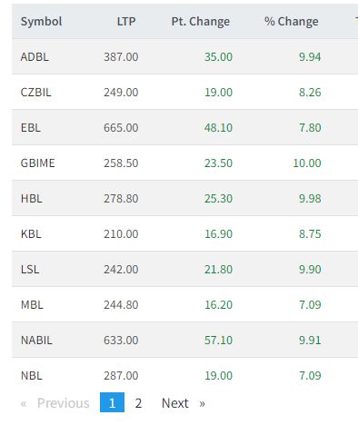 बजारमा सकारात्मक सर्किट लाग्दा बैंकको शेयर मूल्यमा उछाल आएको छ । अधिकांश सेक्टरको शेयर मूल्य बढेपनि वाणिज्य बैंकको शेयर मुल्य सर्वोधिक बढेको हो ।