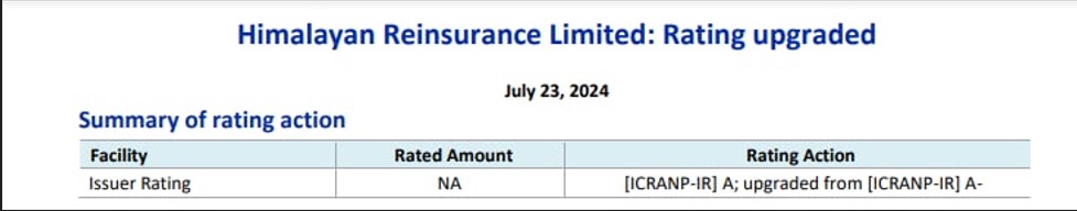 हिमालयन रि इन्स्योरेन्सको रेटिङ अपग्रेड