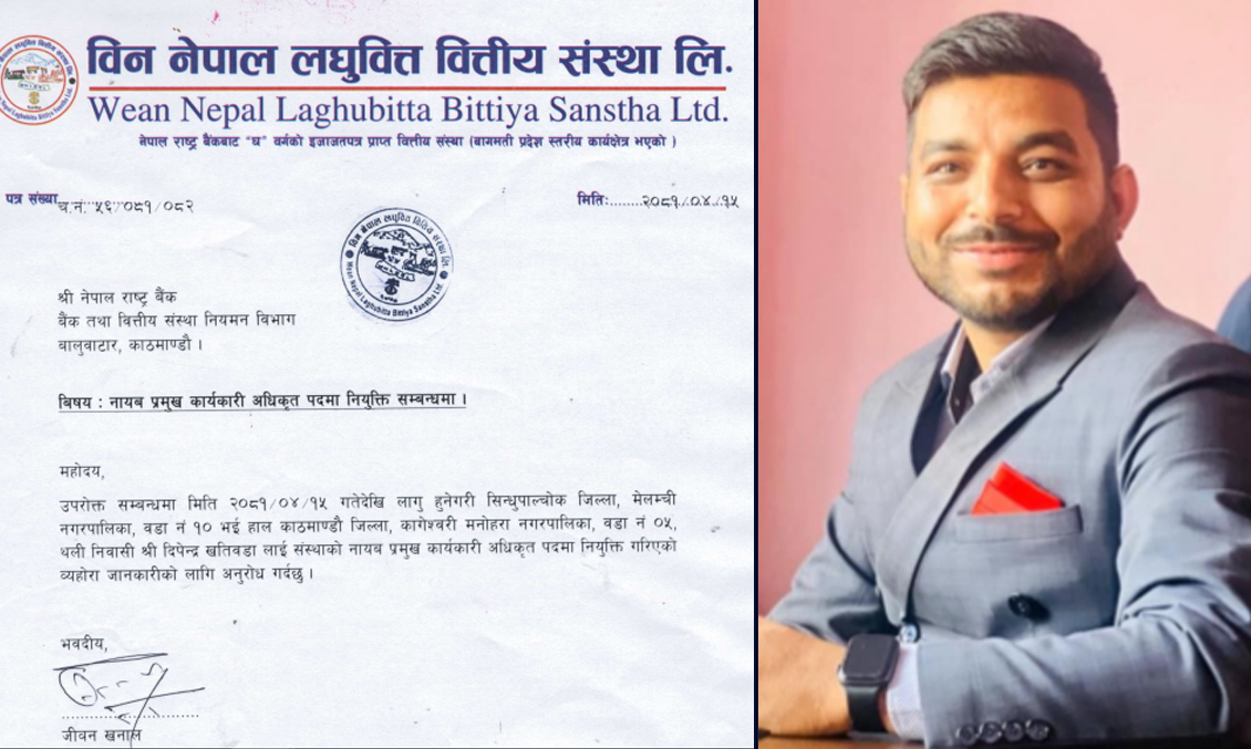 विन नेपाल लघुवित्तको डिसीईओमा दिपेन्द्र खतिवडा नियुक्त