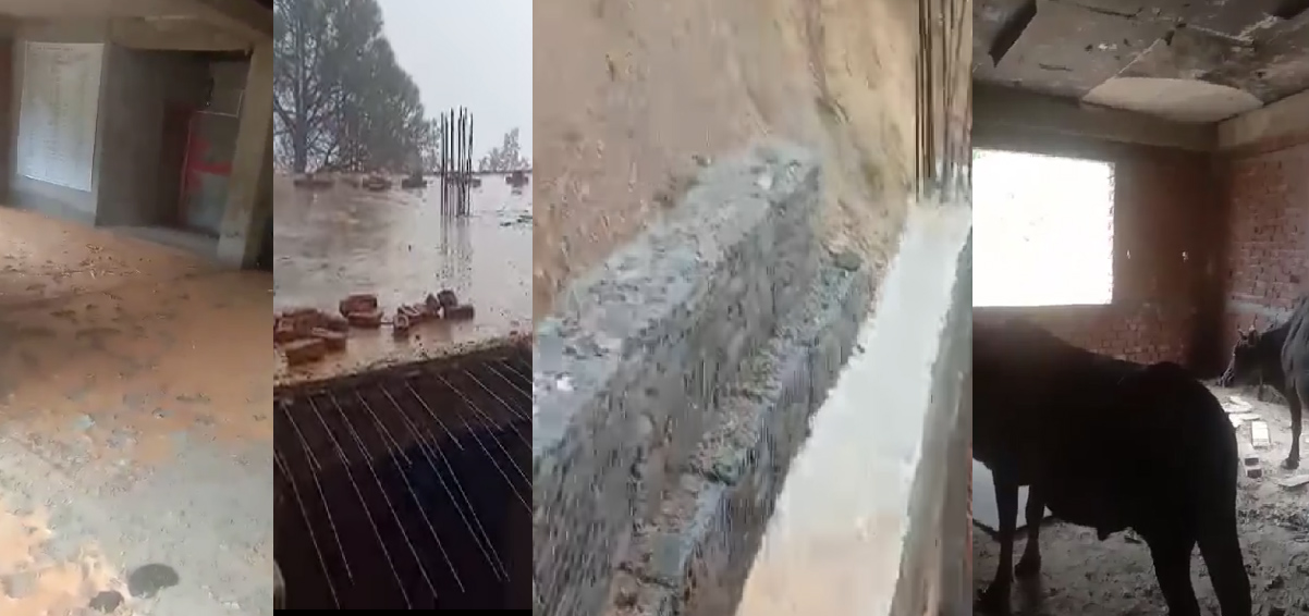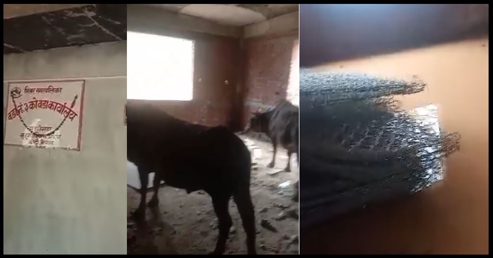 ५० लाखमा बनेको शिखर नगरपालिका-३ को वडा कार्यालयमा गाईबस्तु बाधिदैं, कोठा भित्रै पानीको ताल