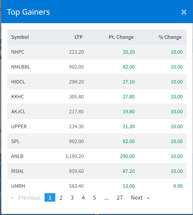 आइतबार नेशनल हाइड्रोपावर, नेरुडे मिर्मिरे लघुवित्त, एचआईडीसीएल, खानीखोला हाइड्रोपावर, आँखु खोला हाइड्रोपावरसहित १७ कम्पनीको शेयरमूल्यमा सकारात्मक सर्किट लागेको छ ।