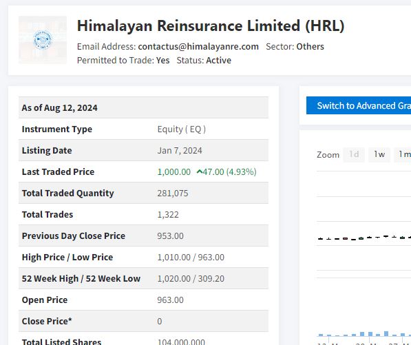 एक हजार रुपैयाँ कट्यो हिमालयन रिइन्स्योरेन्सको शेयर मूल्य