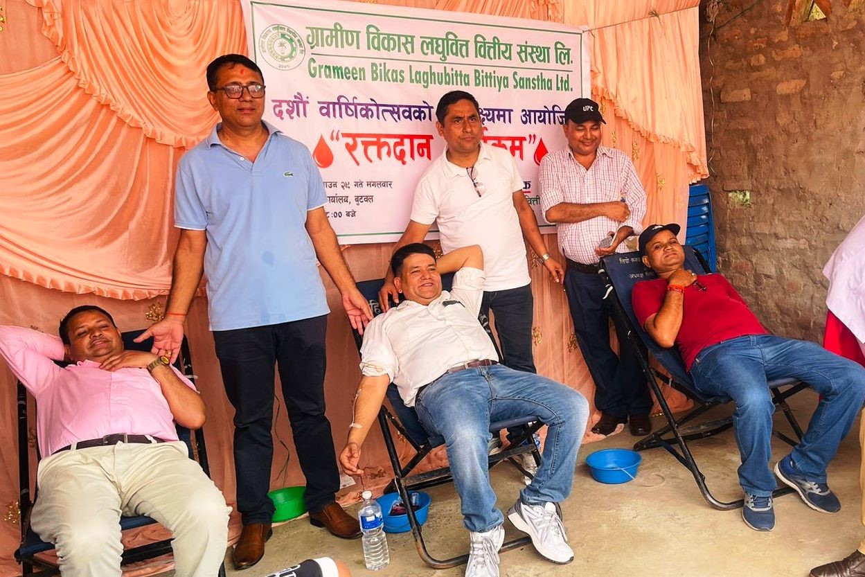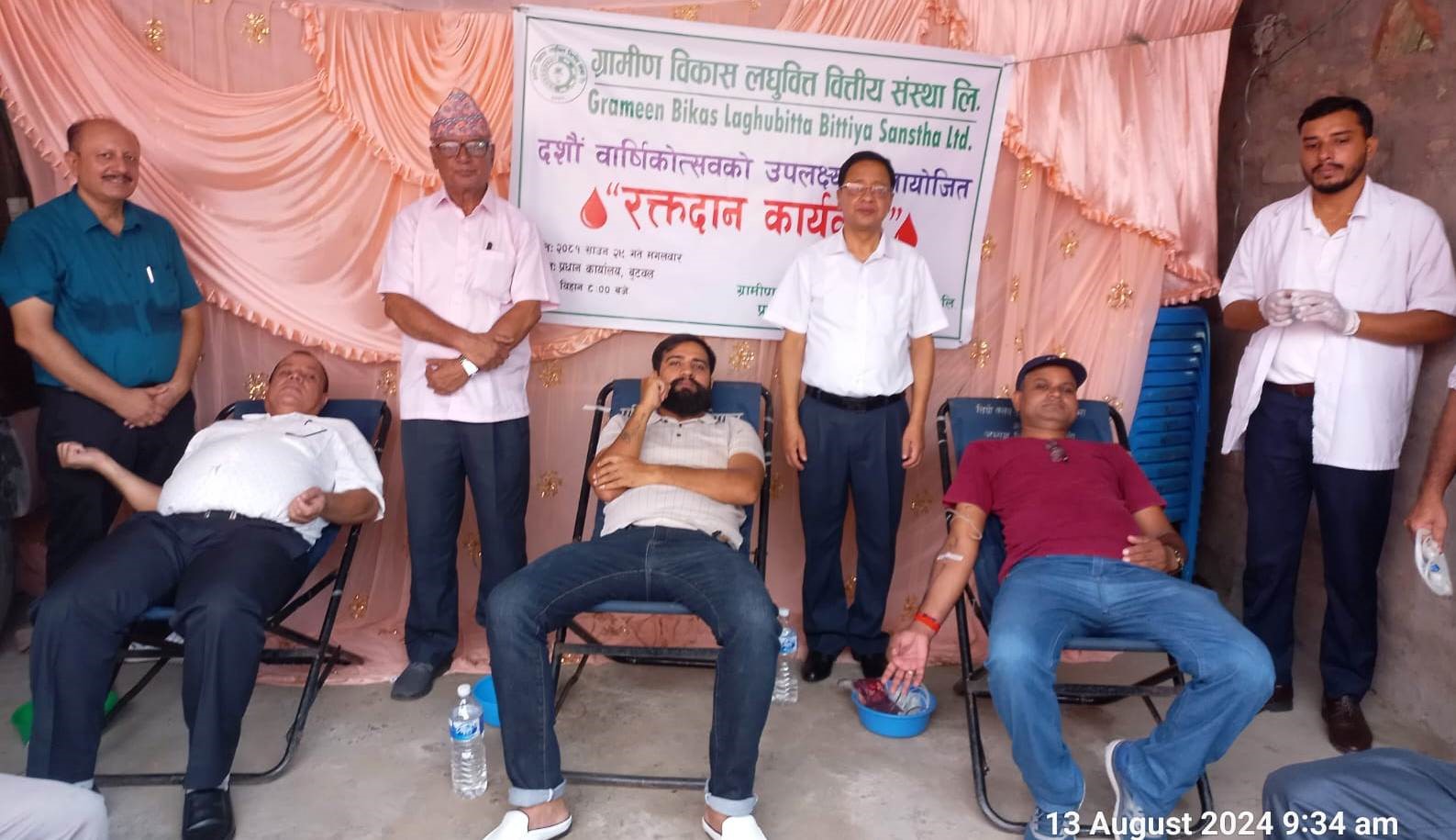 मानविय सेवा र धर्मका लागि रक्तदान गरौं भन्ने मूल उद्देश्यबाट अभिप्रेरित भई ग्रामीण विकास लघुवित्त वित्तीय संस्था लि.ले आफ्नो दशौं वार्षिकोत्सवको उपलक्ष्यमा रक्तदान कार्यक्रमको आयोजना गरेको हो ।