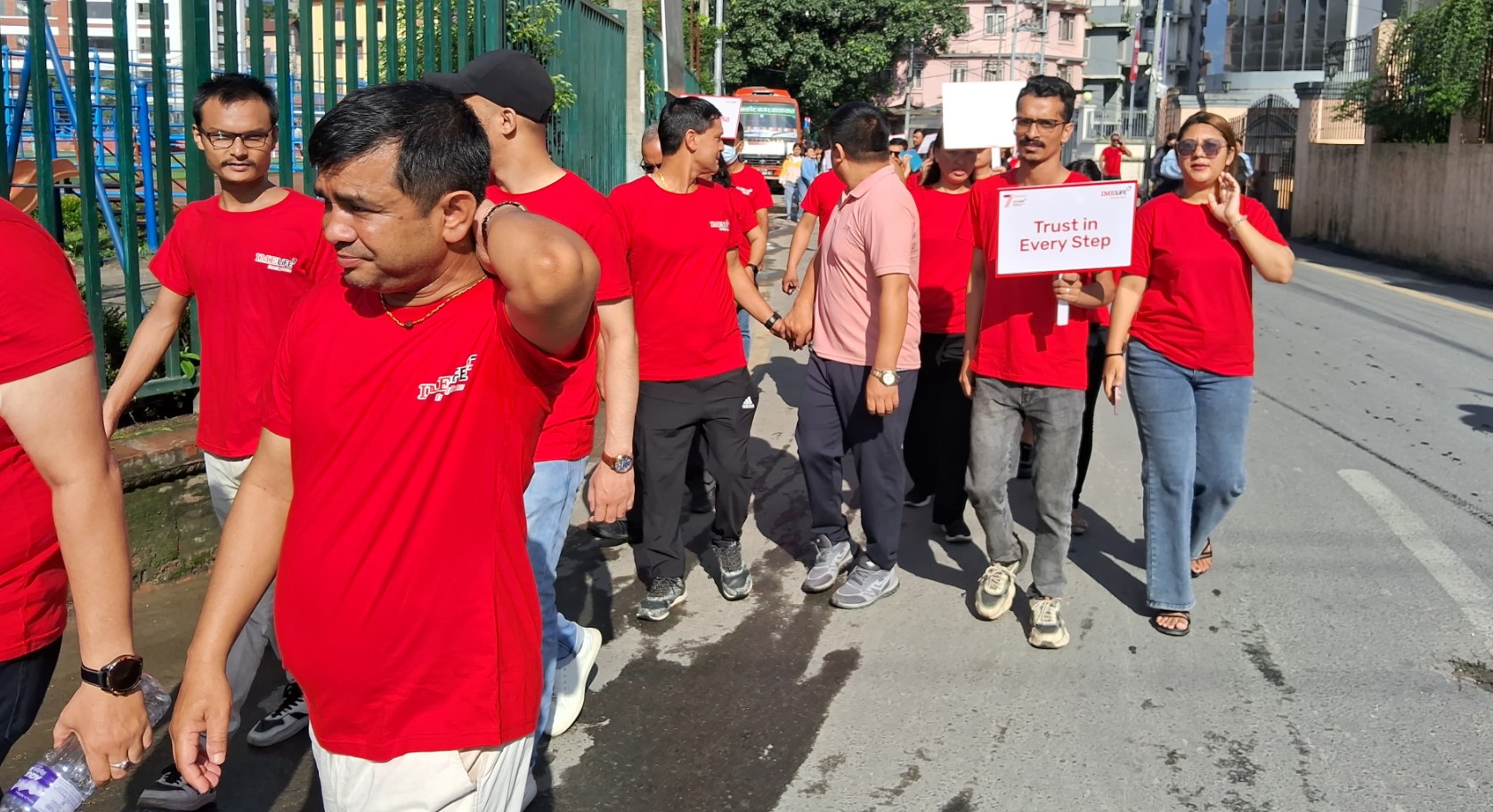 नेपाली भाषा र अंग्रेजी भाषामा जीवन बीमा सम्बन्धी महत्व दर्शाउने प्लेकार्डसहित करिब एक सयभन्दा बढि आइएमइकर्मीहरुले प्रभातफेरि कार्यक्रम आयोजना गरेका हुन् । कार्यक्रममा बीमा अभिकर्ता, कर्मचारी, व्यवस्थापनका उच्च पदस्थ कर्मचारी तथा सञ्चालकहरुको उपस्थिति रहेको थियो । कार्यक्रमपछि लैनचौरमा अहिले रक्तदान कार्यक्रम सुरु भएको छ ।