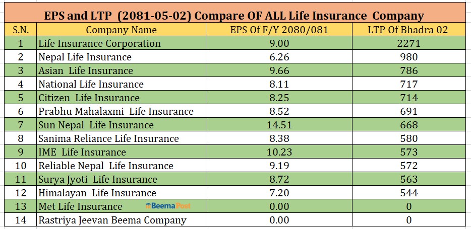 जीवन र निर्जीवन बीमा कम्पनीहरुको ईपीएस र एलटीपीलाई दाजेर हेर्दाः कुनको अवस्था कस्तो ? (तथ्यांकसहित)