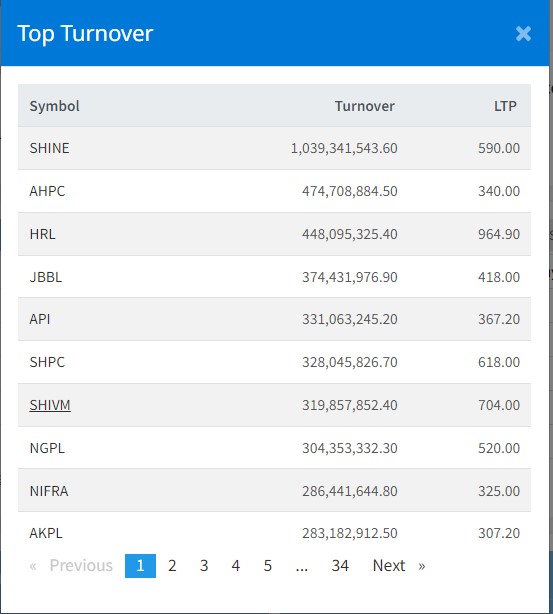 बिहिबार साइन रेसुङ विकास बैंकको एक अर्ब दुई करोड, अरुण भ्यालीको ४४ करोड र हिमालयन रिको ३९ करोडको कारोबार भएको छ । त्यस्तै, ज्योति विकास बैंकको ३६ करोड र अपि पावरको ३१ करोडको कारोबार भएको छ ।