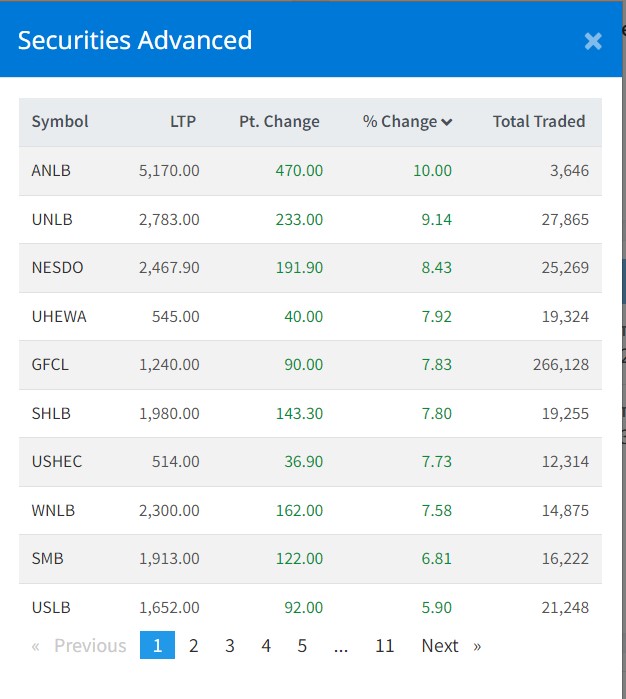 त्यस्तै, आज युजिक नेपाल लघुवित्त, नेष्डो समृद्ध लघुवित्त, अप्पर हेवाखोला हाइड्रोपावर, गूडविल फाइनान्स लगायतका कम्पनीहरुको शेयरमूल्य उच्च प्रतिशतले वृद्धि भएका छन् ।