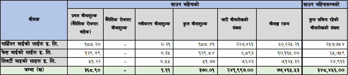 साउनमा लघु जीवन बीमा कम्पनीद्वारा ३ करोड ७० लाखको व्यापार, कुनको कति?
