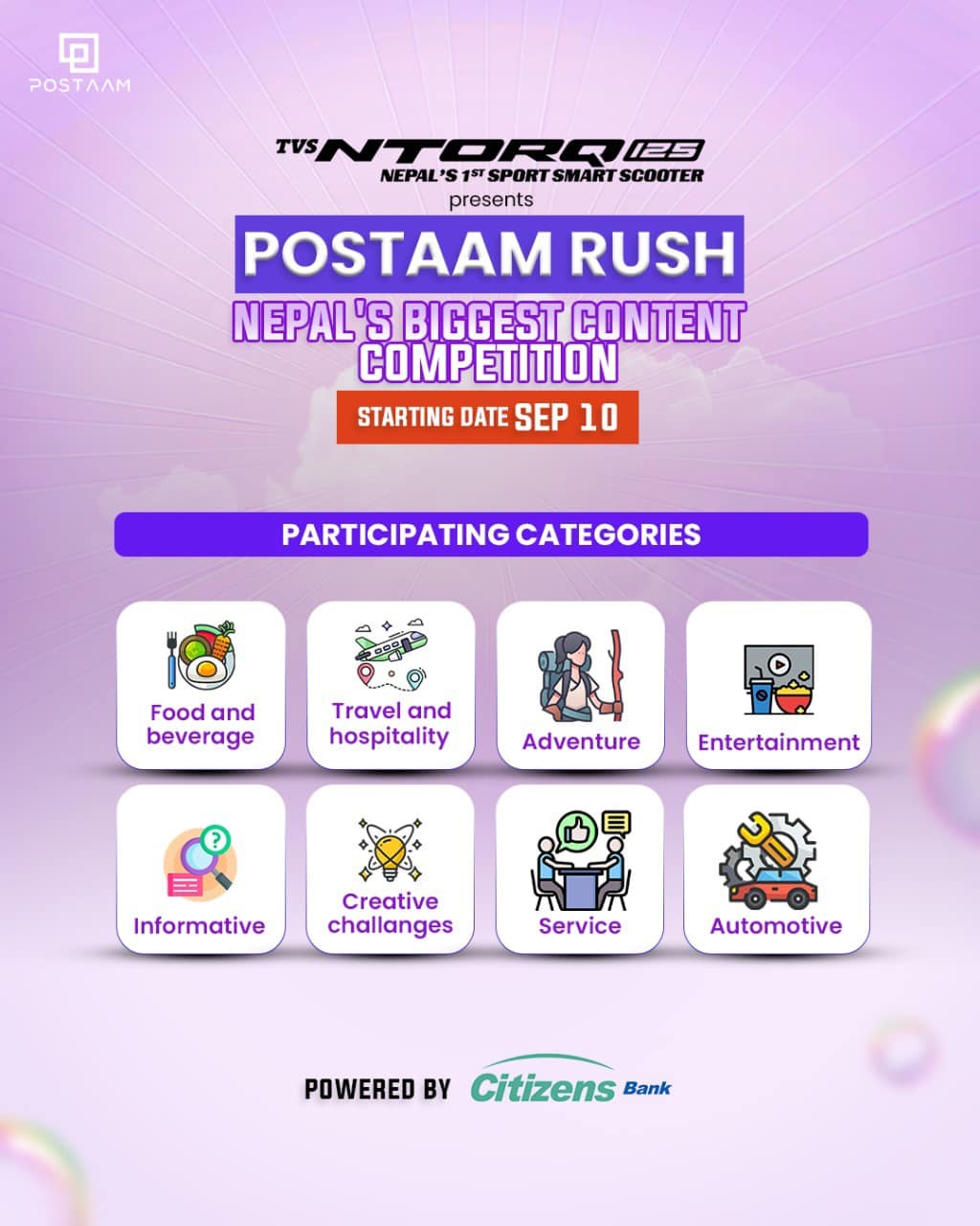 पोष्टम एप, पोष्टम इन्फोसिसद्वारा डिजाइन गरिएको एक सामाजिक प्लेटफर्म हो जहाँ हरेक व्यक्तिले आफ्ना प्रस्तुतिहरुको सृजना गर्न सक्छन । ती सृजना गरिएका प्रस्तुतिहरुलाई विभिन्न माध्यम मार्फत मोनिटाइज गर्न सक्नेछन । यो एप मार्फत सृजनाकर्ताहरूले बिभिन्न विधामा जस्तै यात्रा, मनोरञ्जन, सेवा, मोटर वाहन, जानकारीमूलक , रचनात्मक र अन्य चुनौतीहरूमा केन्द्रित रहेर कन्टेन्ट निर्माण गर्न सक्नेछन । यसरी सामाग्री बनाएर आय सृजना गर्ने पोष्टमका प्रयोगकर्तालाई प्रभावकारी वित्तीय पहुँच सिटिजन्स बैंकले दिलाउँनेछ । प्रयोगकर्ताहरुले आफ्नो कमाईलाई सिधै सिटिजन्स बैंकको खातामा ल्याएर सुरक्षित राख्न सक्नेछन । यस सहकार्यले सृजनाकर्ताहरूलाई उनीहरूको आम्दानी सिधै उनीहरूको सिटिजन्स बैंक खातामा जम्मा गरी झिक्न अनुमति दिएर वित्तीय प्रक्रियालाई सरलीकृत र सुव्यवस्थित बनाउने विश्वास बैंकले लिएको छ ।