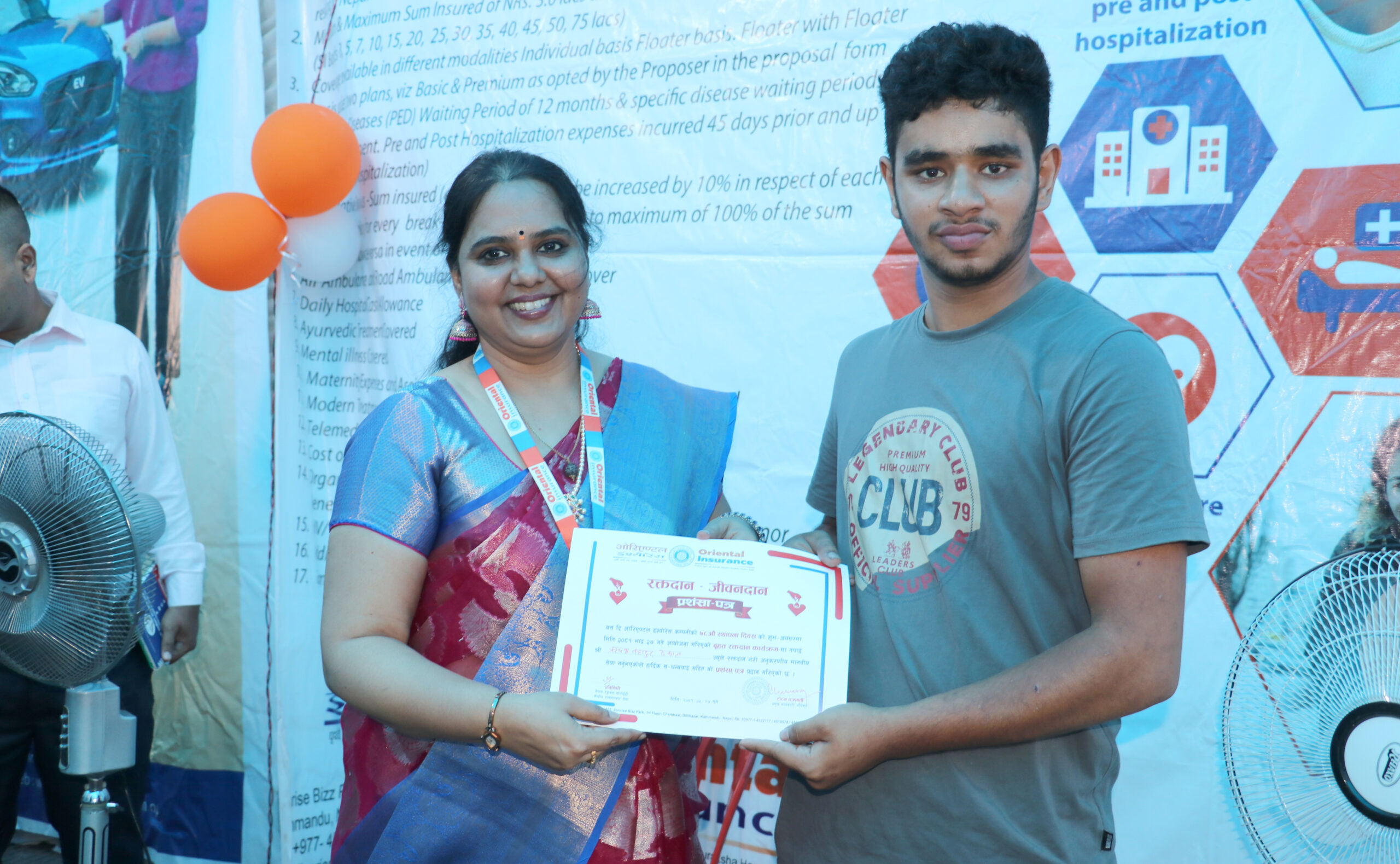 कार्यक्रममा ओरियन्टल इन्स्योरेन्सका प्रमुख कार्यकारी अधिकृत टोटन चक्रवर्ती लगायत कम्पनीका कर्मचारीहरु र अन्य संस्थाका उच्च पदाधिकारीहको उपस्थितीमा भव्यताका साथ सम्पन्न भएको छ। करिव १५० जना मनिसहरुलाई रक्तदान गर्नुका साथै निःशुल्क स्वास्थ्य परिक्षण समेत गराएका छन् ।