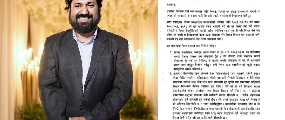 काठमाडौँ । लगानीकर्ता दिपेन्द्र अग्रवालले स्टक ब्रोकर सिप्ला सेक्युरिटिज लिमिटेड (ब्रोकर नं. २०) ले बदमासी गरेको बताउँदै नेपाल स्टक एक्सचेन्ज (नेप्से) मा कारबाहीको माग गर्दै निवेदन पेश गरेका छन्। नेप्सेलाई सम्बोधन गर्दै अग्रवालले सिप्ला सेक्युरिटिजले झुटो जानकारी दिएको र उचित कारबाही हुनुपर्ने माग गरेका हुन्। अग्रवालले सिप्ला सेक्युरिटिजले २०८१ जेठ ९ मा रकम भुक्तानी गरी निस्सा पेश गर्न आदेश दिँदा पनि आफ्नो जिम्मेवारी पूरा नगरेको दाबी गरेका छन्। साथै, उनले ब्रोकरले आफूलाई पटक–पटक हिसाब मिलानका लागि बोलाएको भनेर नेप्सेलाई जानकारी गराए पनि कुनै मितिमा वा माध्यमबाट बोलाइएको छैन भन्ने विषयमा स्पष्ट प्रमाण पेश गर्न माग गरेका छन्। उनले ब्रोकरले व्यापार भइसकेपछि विक्रेतालाई रकम भुक्तानी गर्नुपर्ने कानुनी दायित्व रहेको र यस प्रक्रियामा विक्रेताले अनिवार्य रूपमा उपस्थित हुनुपर्दैन भन्ने विषयमा जोड दिएका छन्। साथै, विदेशमा रहेका लगानीकर्तालाई यस प्रक्रियामा बोलाउने चलनप्रति प्रश्न उठाउँदै ब्रोकरको व्यवहारमाथि असन्तुष्टि जनाएका छन्। अग्रवालले नेप्सेका केही कर्मचारी पनि सिप्ला सेक्युरिटिजको गतिविधिमा संलग्न रहेको आशंका व्यक्त गर्दै नेप्सेलाई ब्रोकरको अनियमितताबारे तुरुन्त कारबाही गर्न आग्रह गरेका छन्। साथै, उनले ब्रोकरहरूले लगानीकर्ताबाट २० प्रतिशतसम्मको ब्याज असुल्ने कार्यप्रति नेप्सेले आँखा चिम्लेर बसेको भन्दै आलोचना गरेका छन्। अग्रवालले ब्रोकरहरूलाई समयमै कारबाही नगर्दा नेप्सेको विश्वसनीयतामाथि नै प्रश्न उठेको र यस विषयमा छिटो कदम चाल्न आग्रह गरेका छन्।